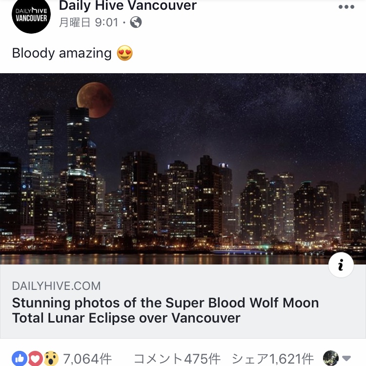 先日カナダで皆既月食が見られました。